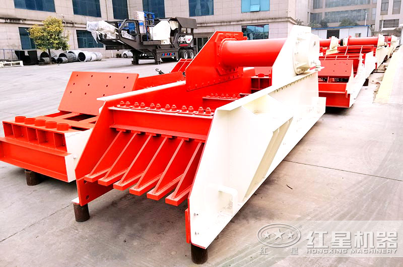 2、给料:经过预处理后的建筑垃圾原料要通过振动给料机送至破碎机的给料口里。振动给料机能够均匀不间断的给料,以此确保整个建筑垃圾回收利用生产线的顺利进行。