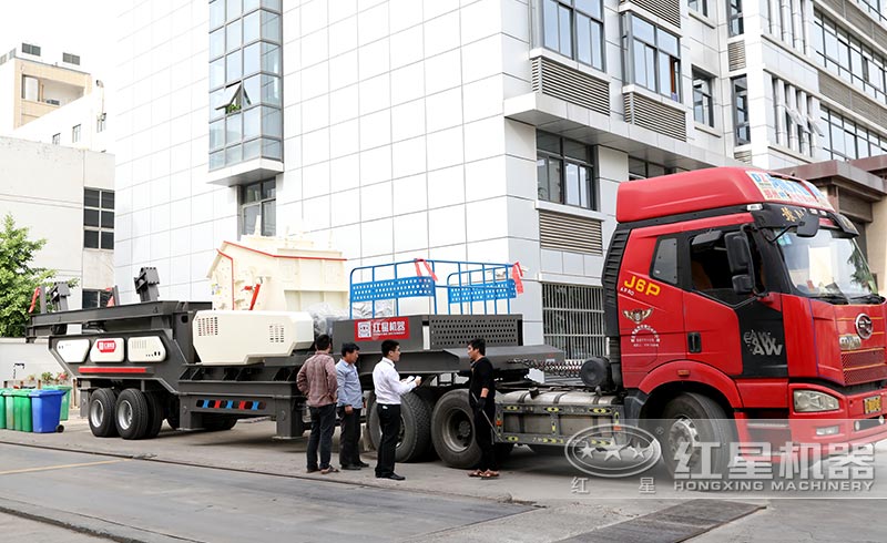 大型移动石子机设备抵达客户现场,准备投产使用