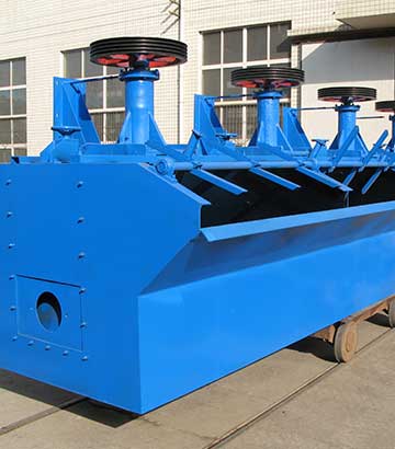 浮选机适用于有色金属的选别,还可用于非金属如:煤莹石、滑石的选别。该浮选机由电动机三角带传动带动叶轮旋转,产生离心作用形成负压,一方面吸入充足的空气与矿浆混合,一方面搅拌矿浆与药物混合,同时细化泡沫,使矿物粘合泡沫之上,浮到矿浆面再形成矿化泡沫,调节闸板高度,控制液面,使有用泡沫被刮板刮出。