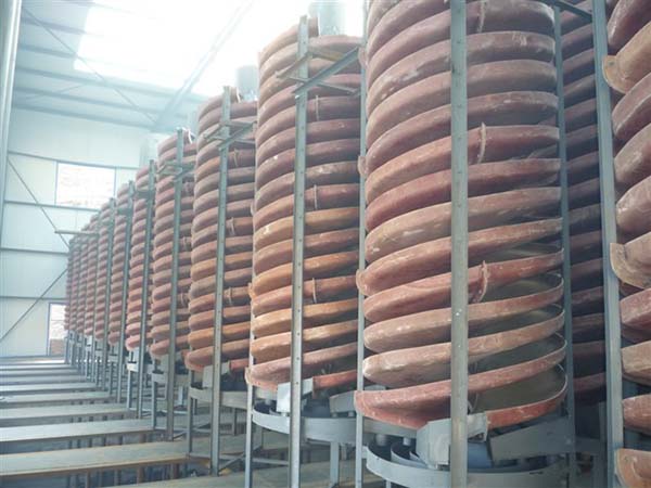 螺旋溜槽适用于分选粒度0.3--0.02毫米细料的铁矿、钛铁矿、铬铁矿、硫铁矿、锆英石、金红石、独居石、磷乙矿、钨矿、锡矿、钽矿、铌矿以及具有比重差异的其他有色金属、稀有金属和非金属矿物体。本设备具有选别过程稳定、容易控制,给矿浓度允许变化范围大,富集比高、回收率高,占地面积小、耗水量少,结构简单,无需动力,处理量大,安装简易,操作方便,投资小见效快等优点。